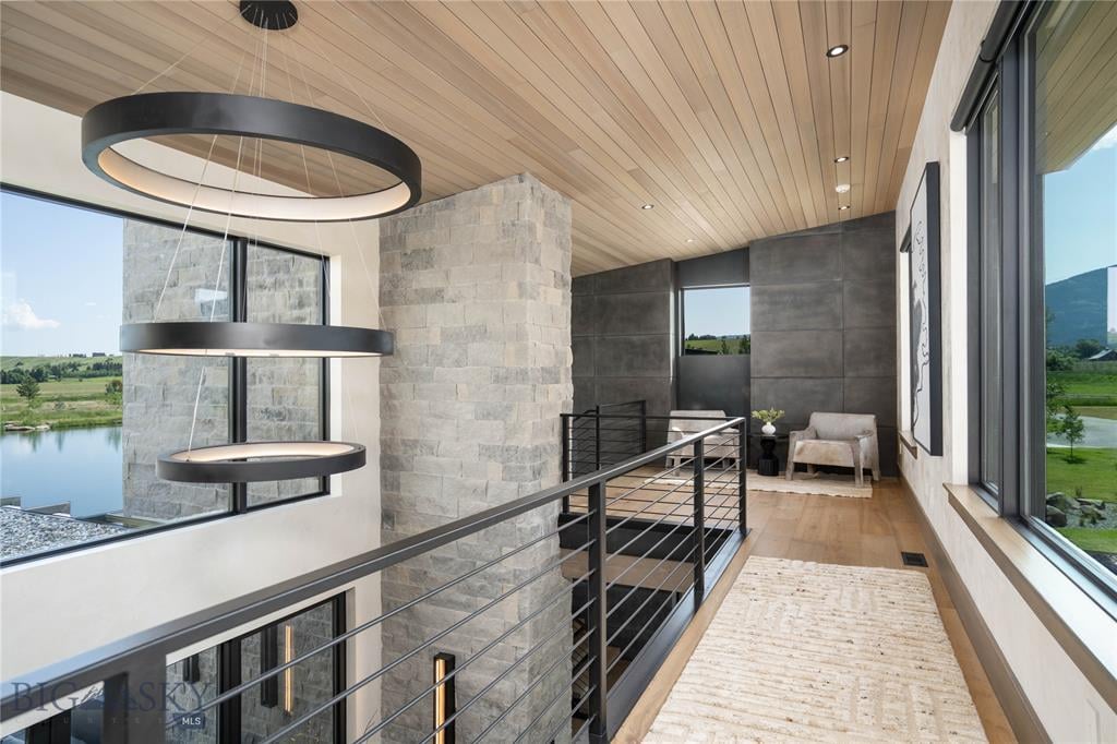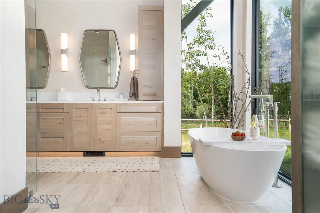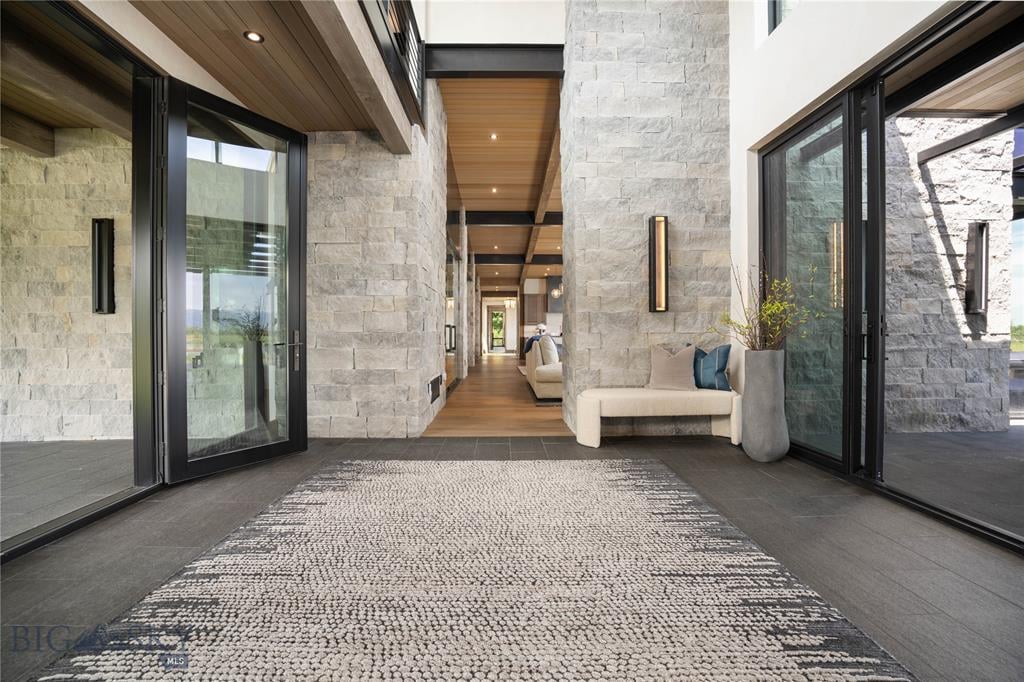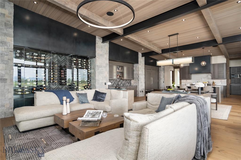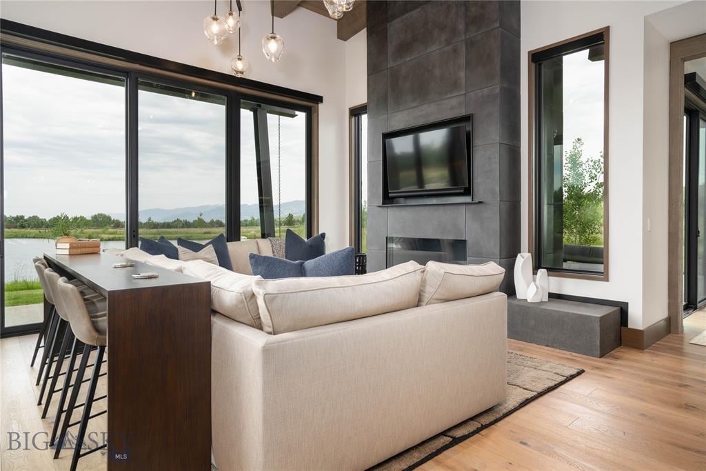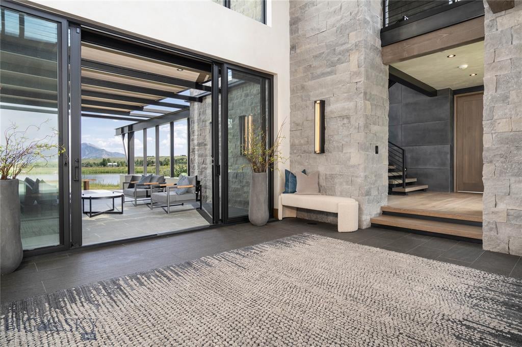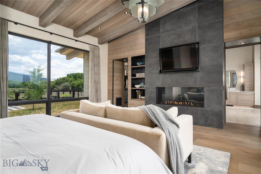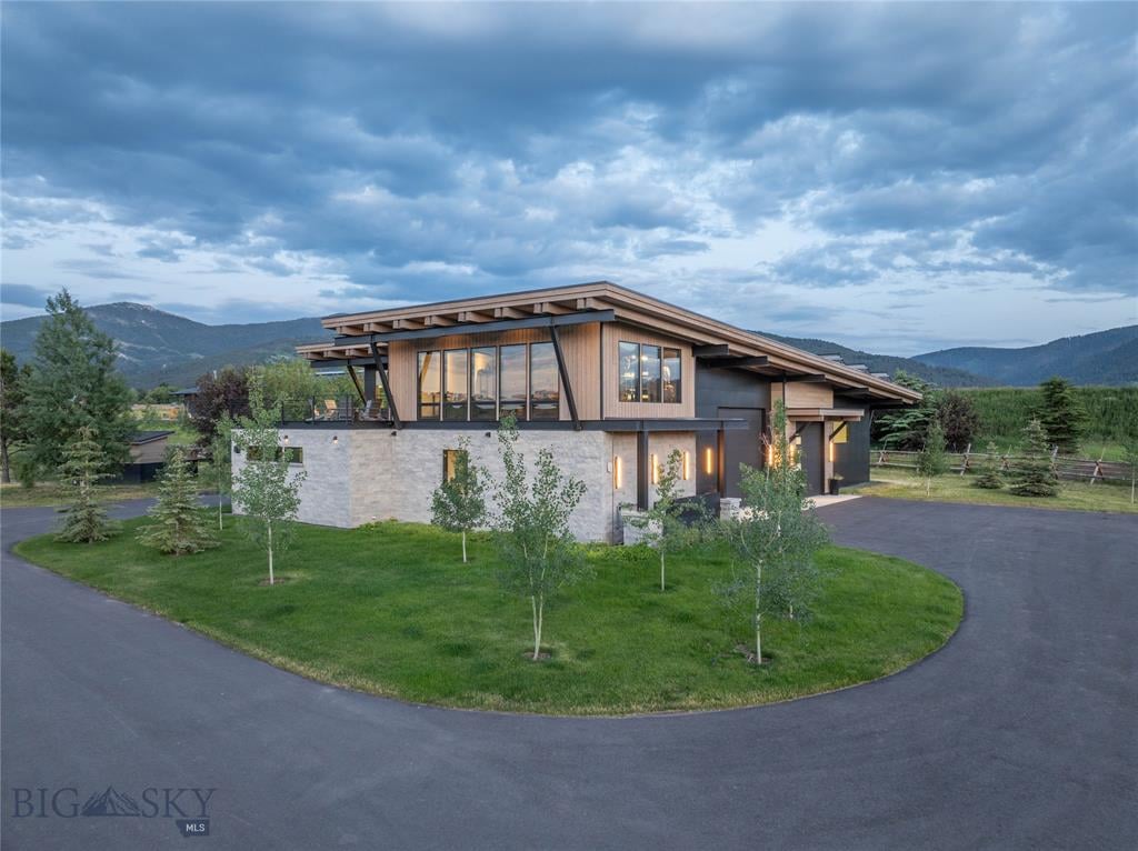 Welcome to Lightfell—Where light, land and water meet and life slows down. This premier Montana estate offers the perfect fusion of functional, modern luxury and a deep connection with the 20 acres of land located just 10 minutes from downtown Bozeman. Completed in 2024 by Centre Sky Architecture and Bridger Builders, this remarkable property includes a 5,655 SF main residence, a 1,990 SF guest home (totaling over 7,600 SF living space) and a 5,300 SF shop and Sportsman’s Lounge—crafted for elevated everyday living and effortless entertaining. Every detail of the main home has been meticulously designed, from floor-to-ceiling windows framing panoramic views of four mountain ranges that surround the valley to the tranquil sightlines over your private 3-acre, stocked pond. Enjoy seamless indoor-outdoor living with heated patios, a sunken hot tub, outdoor gas fireplace, built-in grills, and beautifully manicured lawn and landscaping. Inside, the 3-bedroom main home features a sanctuary primary suite with vaulted ceilings, fireplace, spa-inspired bath with soaking tub and tile shower, and a generous walk-in closet complete with island and private laundry. An open-concept Great Room with temp-controlled wine gallery, home gym, two additional ensuite bedrooms and fenced raised garden beds round out this thoughtfully curated residence. The 4-bedroom guest home is ideal for hosting, offering two identical wings—each with a spacious large bedroom and bunk room—joined by a comfortable central living area. Guests can enjoy privacy without sacrificing connection. The 5,300 SF heated shop is a dream setup for Montana’s outdoor lifestyle. Two pull-through bays including one with 14'x15’ doors and an additional door to accommodate RVs, toys, and gear. Inside, the Sportsman’s Lounge provides a rustic gathering space with kitchenette, gas stove, and built-in safe. Additional amenities include a dog wash station, washer/dryer, and an upper level game room with billiards, foosball, and shuffleboard completed by a rooftop deck offering sweeping views of the Bridgers—perfect for summer sunsets or starry nights. This rare offering delivers privacy, space, and five-star living in one of Bozeman’s most exclusive neighborhoods with abundant wildlife and Bozeman Creek access.