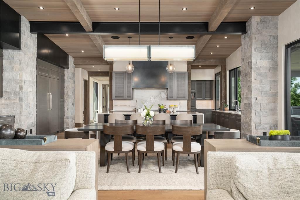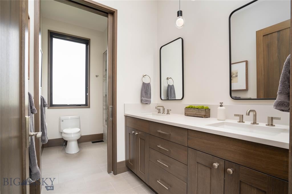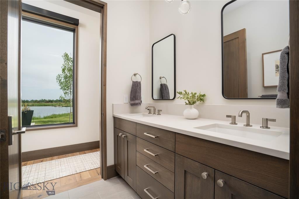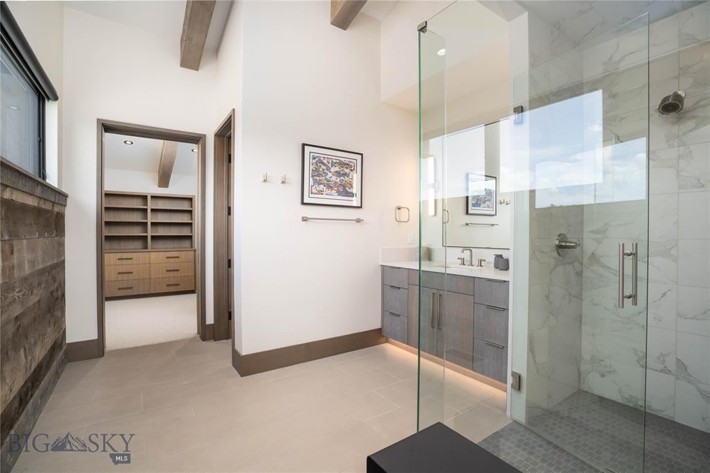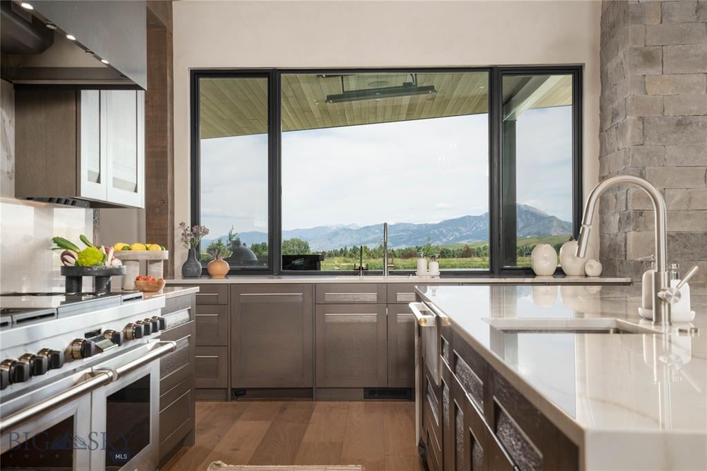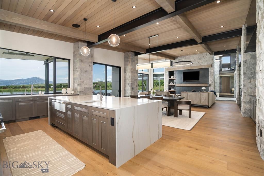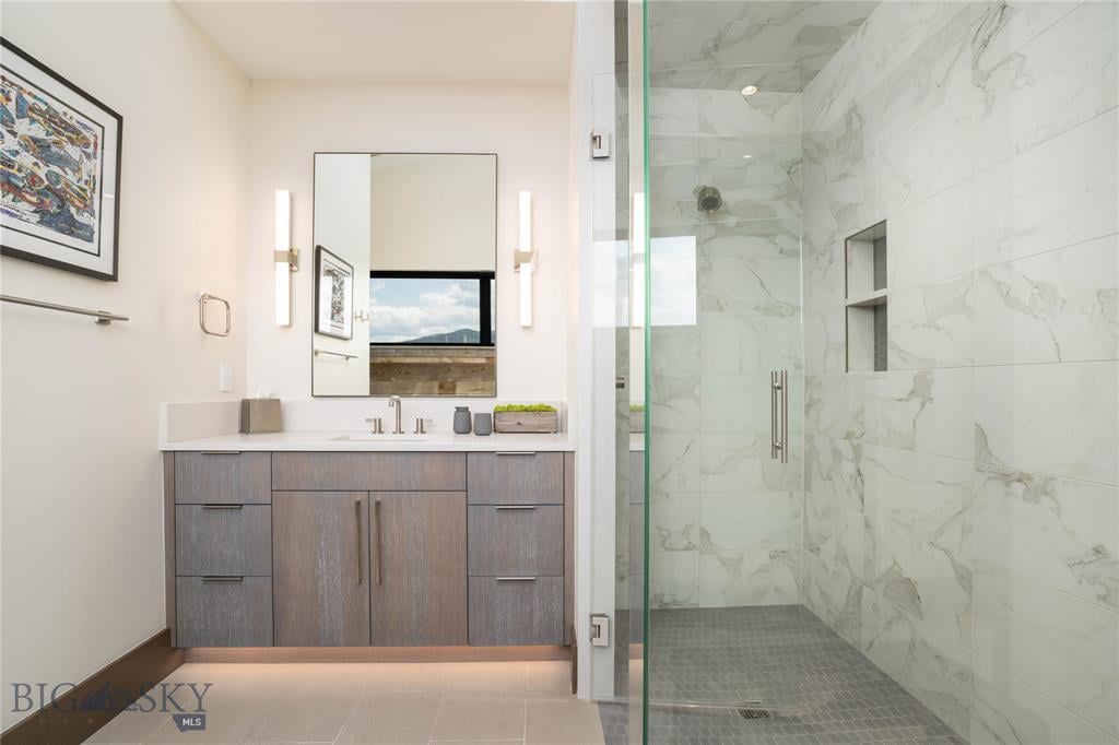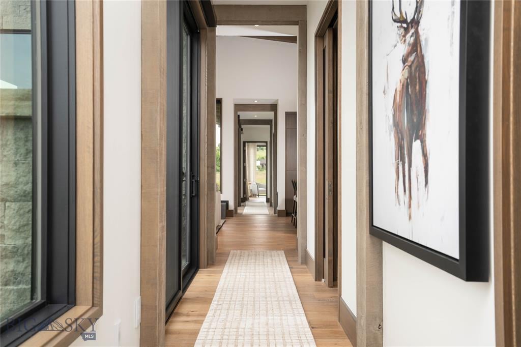 Welcome to Lightfell—Where light, land and water meet and life slows down. This premier Montana estate offers the perfect fusion of functional, modern luxury and a deep connection with the 20 acres of land located just 10 minutes from downtown Bozeman. Completed in 2024 by Centre Sky Architecture and Bridger Builders, this remarkable property includes a 5,655 SF main residence, a 1,990 SF guest home (totaling over 7,600 SF living space) and a 5,300 SF shop and Sportsman’s Lounge—crafted for elevated everyday living and effortless entertaining. Every detail of the main home has been meticulously designed, from floor-to-ceiling windows framing panoramic views of four mountain ranges that surround the valley to the tranquil sightlines over your private 3-acre, stocked pond. Enjoy seamless indoor-outdoor living with heated patios, a sunken hot tub, outdoor gas fireplace, built-in grills, and beautifully manicured lawn and landscaping. Inside, the 3-bedroom main home features a sanctuary primary suite with vaulted ceilings, fireplace, spa-inspired bath with soaking tub and tile shower, and a generous walk-in closet complete with island and private laundry. An open-concept Great Room with temp-controlled wine gallery, home gym, two additional ensuite bedrooms and fenced raised garden beds round out this thoughtfully curated residence. The 4-bedroom guest home is ideal for hosting, offering two identical wings—each with a spacious large bedroom and bunk room—joined by a comfortable central living area. Guests can enjoy privacy without sacrificing connection. The 5,300 SF heated shop is a dream setup for Montana’s outdoor lifestyle. Two pull-through bays including one with 14'x15’ doors and an additional door to accommodate RVs, toys, and gear. Inside, the Sportsman’s Lounge provides a rustic gathering space with kitchenette, gas stove, and built-in safe. Additional amenities include a dog wash station, washer/dryer, and an upper level game room with billiards, foosball, and shuffleboard completed by a rooftop deck offering sweeping views of the Bridgers—perfect for summer sunsets or starry nights. This rare offering delivers privacy, space, and five-star living in one of Bozeman’s most exclusive neighborhoods with abundant wildlife and Bozeman Creek access.