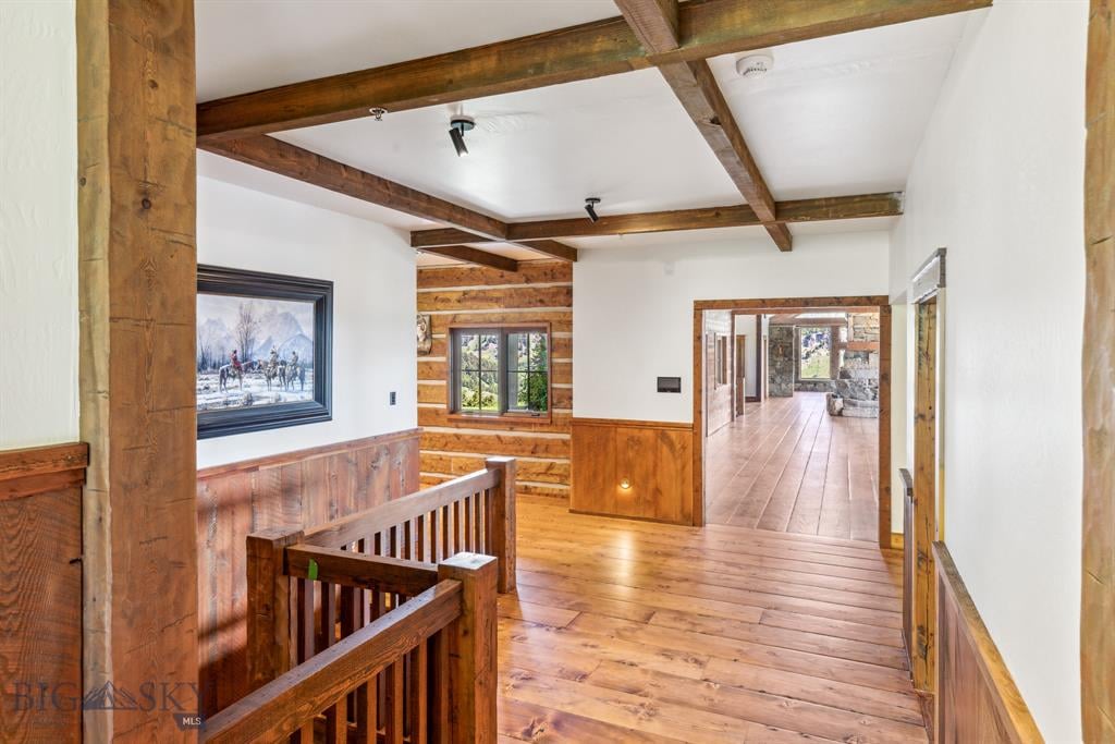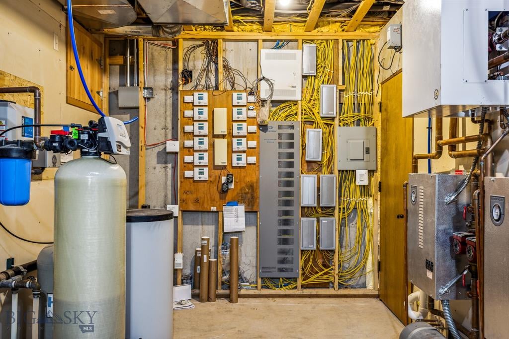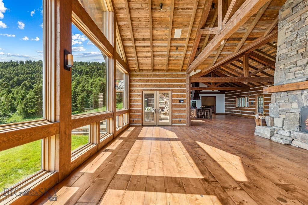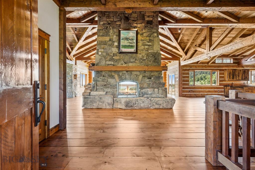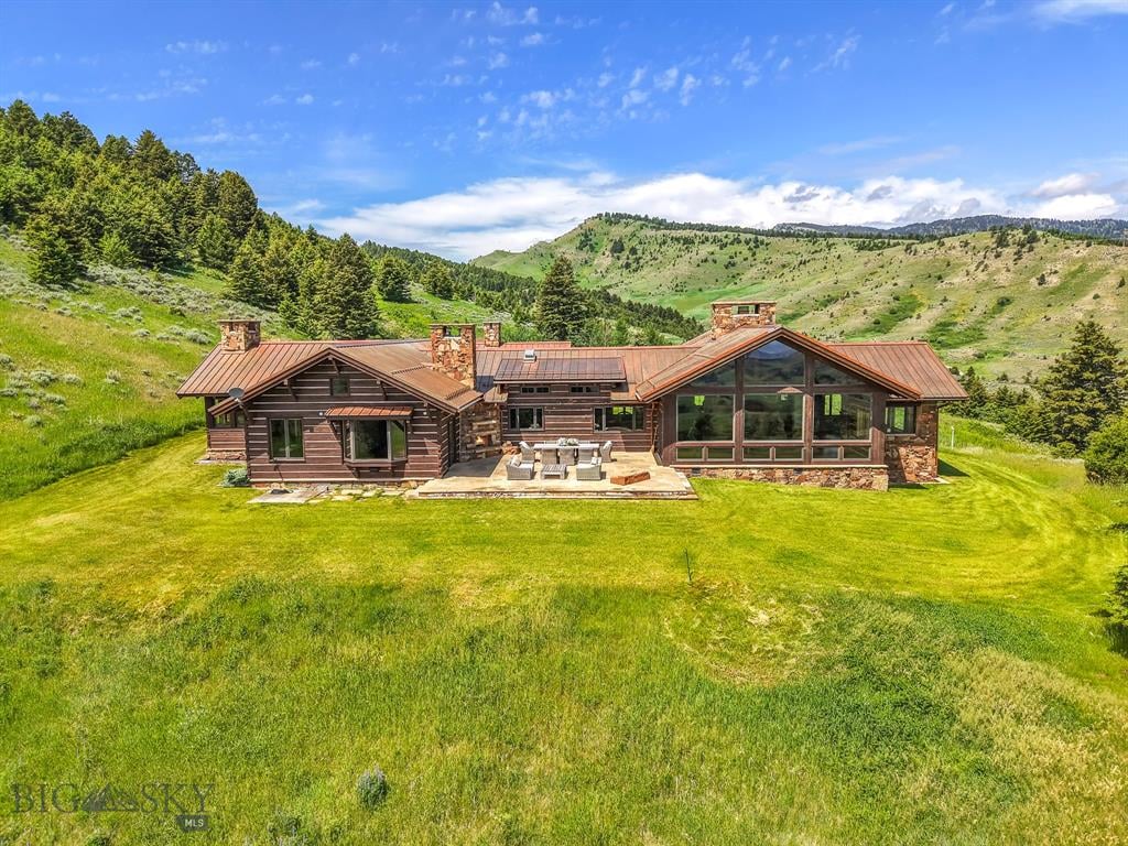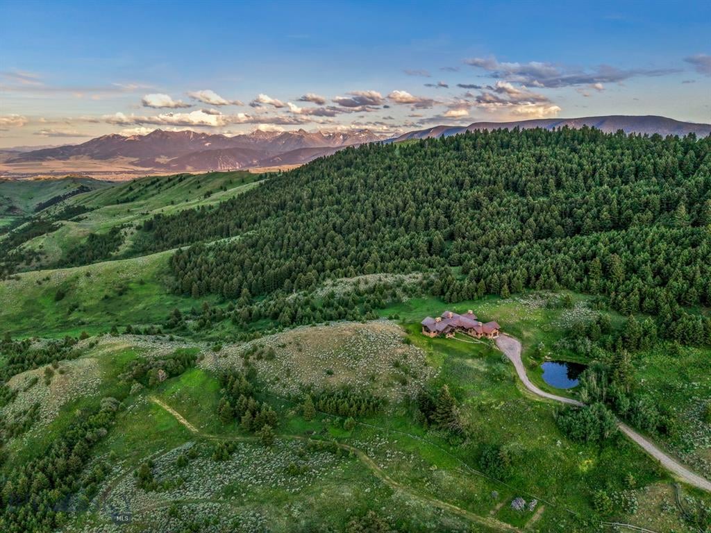 Sky Band Ranch, at the southern base of the Bangtail Mountains captures the magic of Southwestern Montana. Its location between the treasured towns of Bozeman and Livingston makes it even more desirable. The ranch spans +/- 262 serene acres offering the freedom to mountain bike, hike, horseback ride, hunt, snowshoe or cross-country ski right out the back door. It supports horses or other livestock. Area Creek (also known as O’Rea Creek) runs on the ranch for approximately 1/3 mile. The gorgeous western-style residence and pond are tucked upon a hilltop bordered by timbered hillsides, lush meadows and creek bottom providing refuge to elk, deer, moose, bear, grouse, Hungarian partridge, and other impressive wildlife. The residence built in 2008 exemplifies exceptional craftsmanship and meticulous attention to detail, effortlessly combining rustic style with attractive finishes perfectly integrated into the striking Montana landscape. Massive amounts of stone were brought in for the outdoor patio area, some interior and exterior walls, and five substantial fireplaces. Hewn Douglas fir was used for the interior and exterior walls. Custom made cabinetry, solid wood doors, trim and gorgeous wide plank fir flooring which has been recently refinished to perfection are found throughout the main floor. Pella windows and French doors frame the beautiful landscape of mostly ranch land with the Absaroka Mountains as its backdrop. Massive wood beams/trusses and impressive two-sided stone fireplace anchor the sun filled open floor plan of the living/kitchen/dining area creating a wonderful lodge atmosphere for gatherings or hunkering down with an enjoyable book. Additionally, there is a dedicated office/library, a spacious laundry room, and an oversized attached two-car garage. Downstairs is a 4,758 sf partially finished walk out basement offering endless possibilities. The property is behind a locked gate. This may be an excellent candidate for a conservation easement. Sky Band Ranch offers an extraordinary Montana lifestyle for outdoor enthusiasts seeking stunning views, open space and nature near world-class amenities.