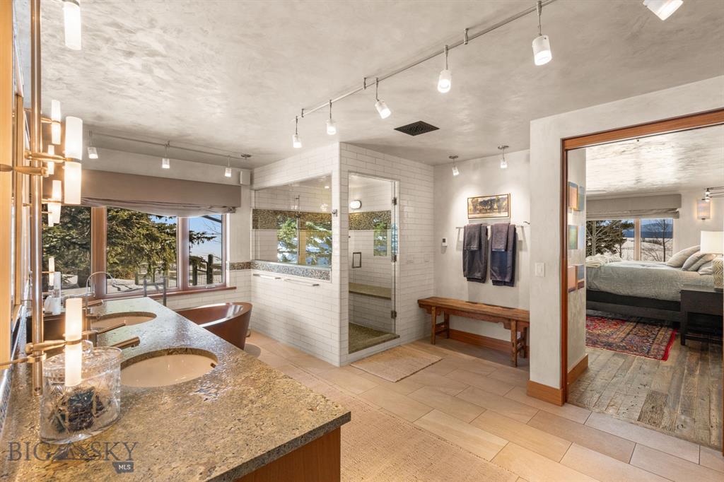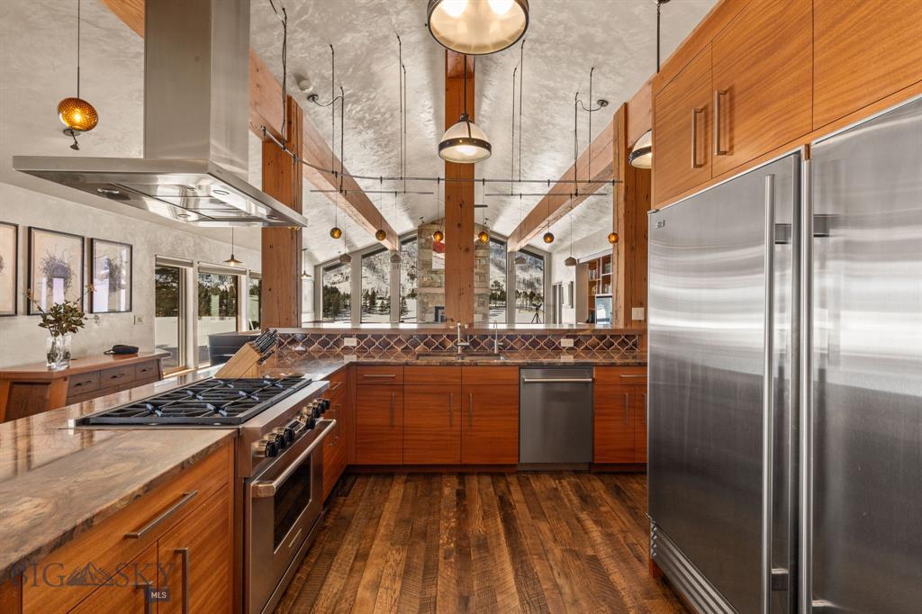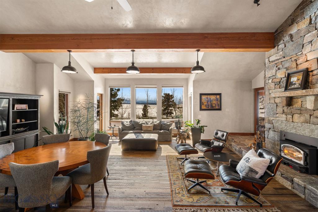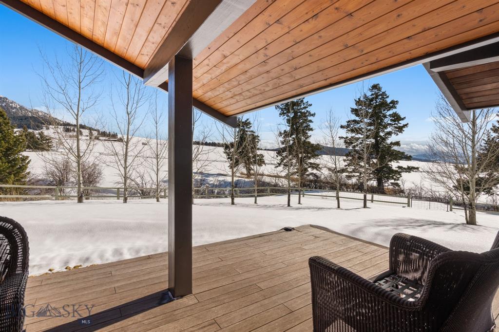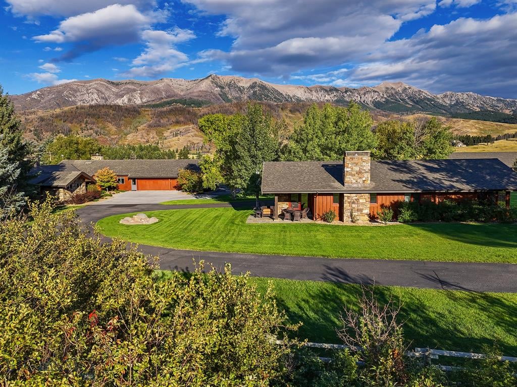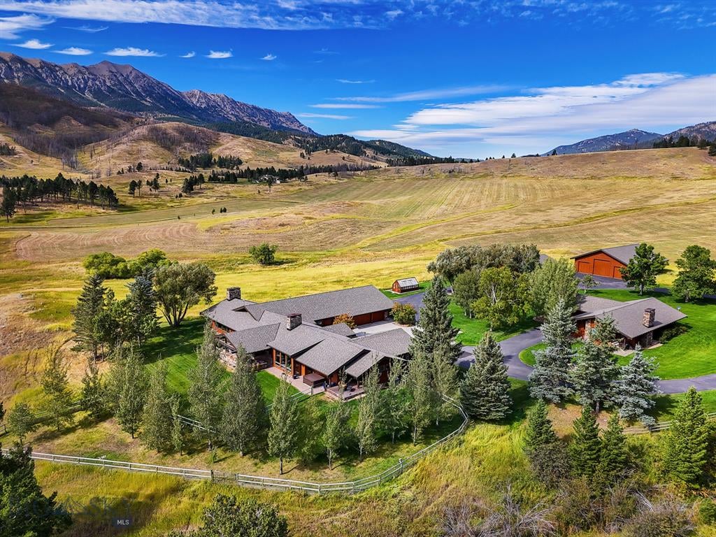 Tepee Ridge Homestead is a tranquil mountain retreat nestled in the highly sought-after Bridger Canyon, just 10 minutes from both Bozeman and Bridger Bowl Ski Area. Set on approximately 97 deeded acres, this remarkable property features lush mountain meadows and breathtaking panoramic views of the Bridger and Spanish Peak ranges. The expansive 5,386± square-foot Western contemporary home is thoughtfully designed for comfortable, single-level living, offering three bedrooms and two-and-a-half bathrooms. Spacious living and dining areas provide an inviting setting for both entertaining and relaxation. Step onto the expansive covered back patio to take in stunning southern views—perfect for hosting gatherings and soaking in Montana’s unforgettable sunsets. On site next to the main residence, a charming 1,422± square-foot guest house features two bedrooms and two bathrooms. The Perfect set up for family and guests. Additional amenities include a greenhouse, a large shop, and a toy barn, creating ample space for recreation, hobbies, and embracing Montana’s great outdoors.